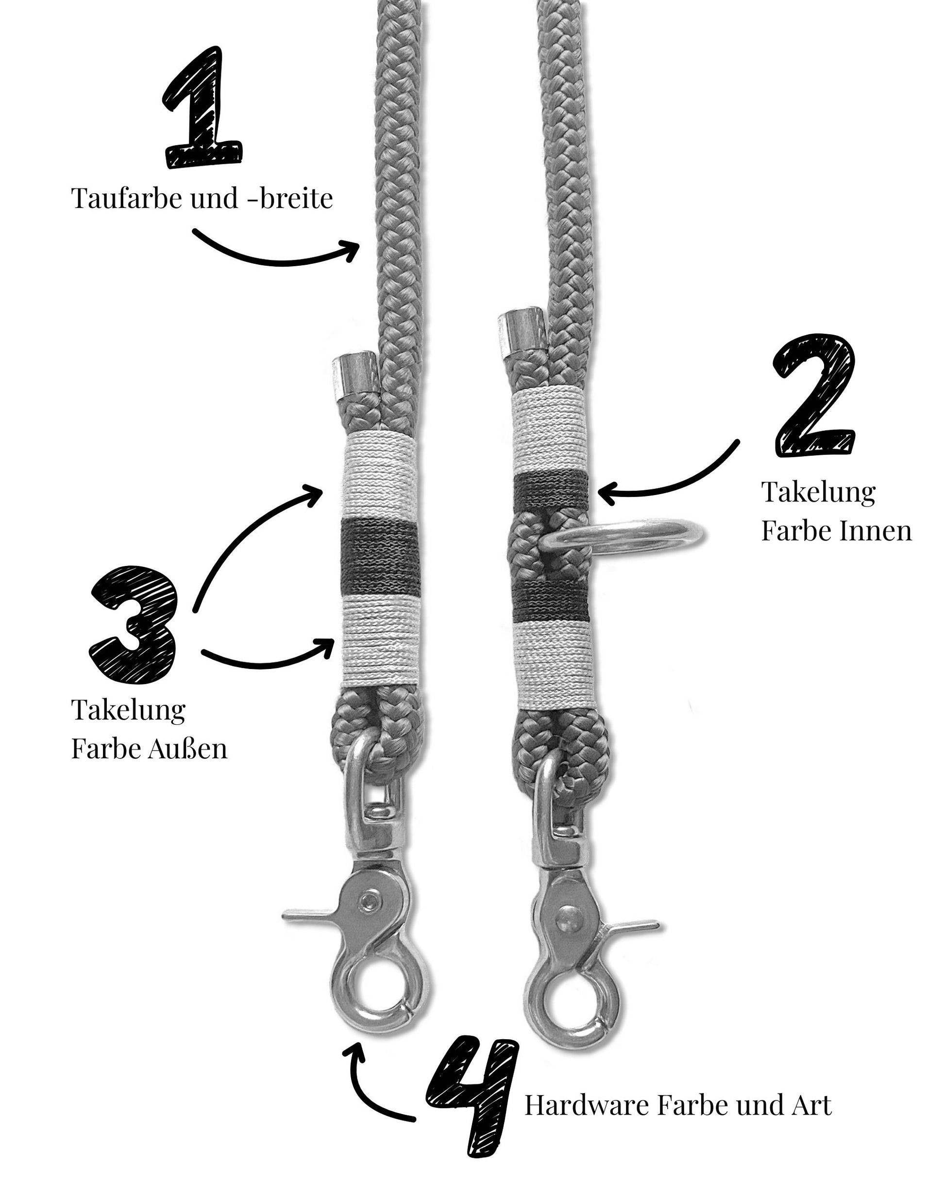 ✔︎ als Kurzleine mit verstellbaren Ringen wählbar (150 cm)